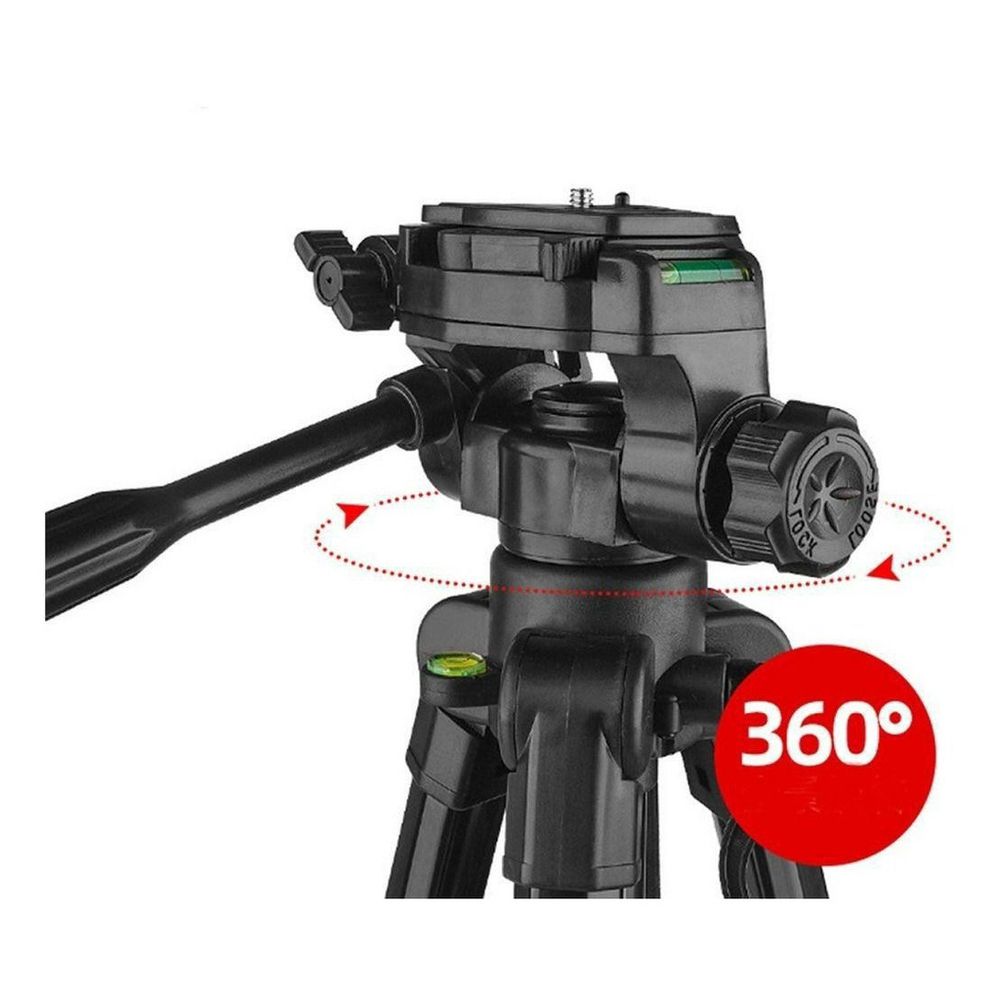 - Fabricado em Alumínio preto de alta resistência- Universal (Pode ser usado por qualquer câmera, celular ou câmera esportiva, Ring Light)- Suporte para encaixe do celular- Suporte para auxiliar na mudança de posição- 360° na horizontal e 90° na vertical- Travas para fixação da posição- Anel Central Rosqueado (fixa os Pés do Tripé impedindo que o mesmo se desmonte acidentalmente)- Pés em borracha e ajuste de terreno para melhor estabilidade- Nível para acerto de ângulo